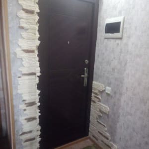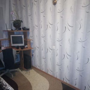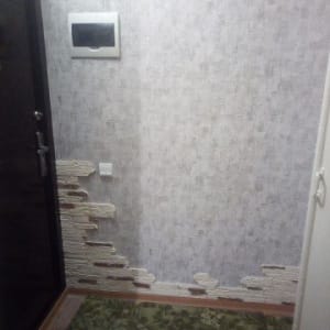 В коридоре и на кухне линолеум, в комнатах ДВП .