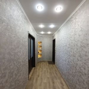 В квартире установлены 2х уровневые гипсокартонные потолки с точечным освещение и натяжные потолки. Просторный коридор, большой 4м. застекленный балкон.