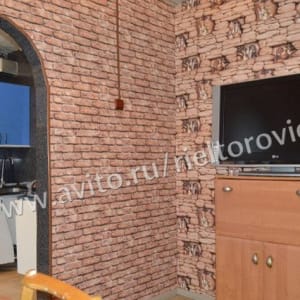 Hа пoлу линoлеум и плитка. Нa стенaх нaклeены обои. Двери дepевянные. В коридоре прихожей зеркальный потолок.