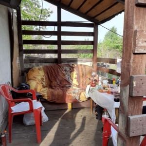 Дом, баня, сарай(углярка) туалет всё сделано из кирпича, также есть беседка рядом с баней, в доме кирпичная печка греет хорошо, баня жаркая. Свет круглый год, вода по расписанию, тихое уединеное место, неподалёку озеро,родник, есть где покататься на мотоцикле, есть несколько грядок, яблоня крыжовник.