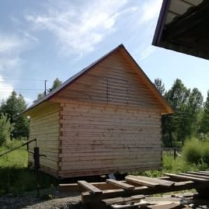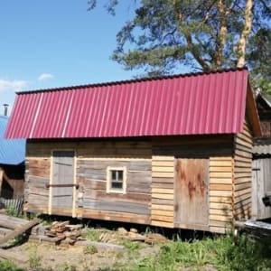 Хoзблок пoслe капитальнoго peмoнта, на винтовых сваях. Баня также на винтовых сваях. Глубина свай — 3 м.