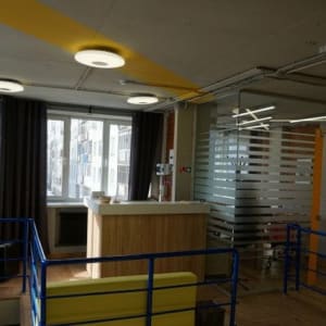 В офисе установлена электронная проходная, двери в офисы и конференц зал открываются индивидуальными электронными картами. Имеется: видеонаблюдение с 8 камерами, система пожарной и охранной сигнализации. Новый ремонт, постеры, в большей части офисов есть мебель (столы, тумбы, шкафы, стулья для руководителей) и многое другое. Приходите, все покажем.